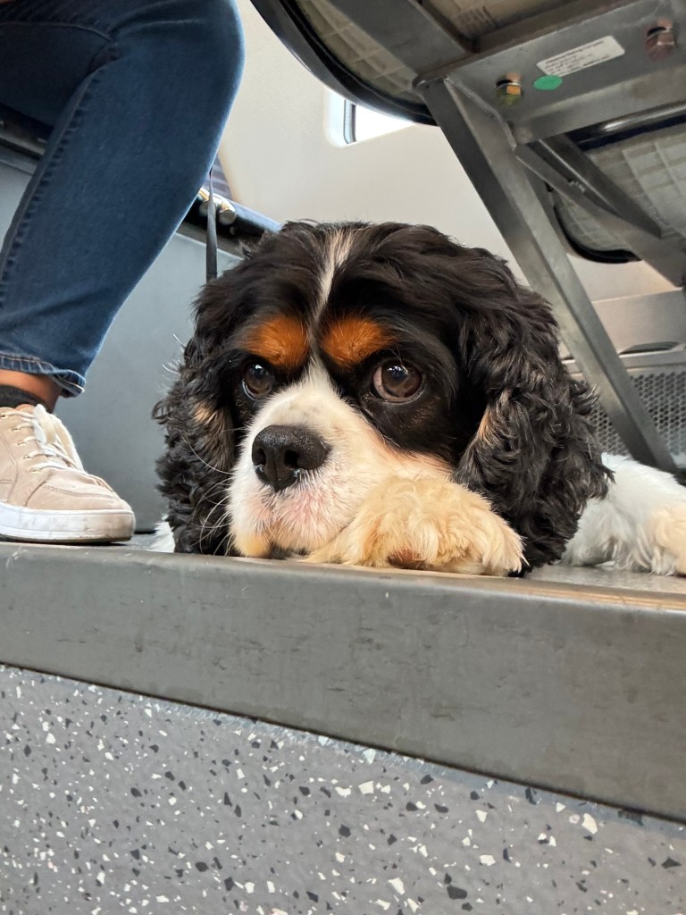 The ride down was smooth and easy, giving us plenty of time to admire the Pacific Northwest rolling by outside. Loki, however, was more interested in sniffing the air vents, because apparently public transit air is packed with mysterious stories only dogs can decode.